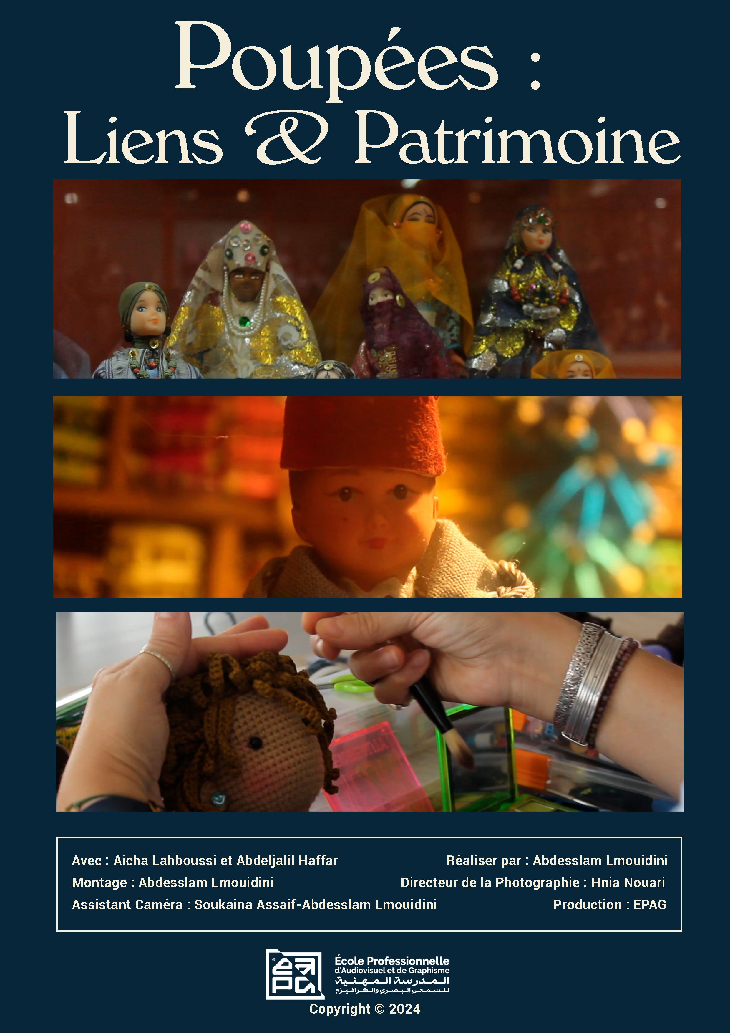 A documentary project exploring the importance of dolls in cultural and artistic heritage. The film focuses on how these objects — often seen as toys — convey unique stories and traditions, and play a key role in preserving cultural identities. It highlights artisans, collectors, and museums (including the Medina House in Rabat) working to pass down this intangible heritage.